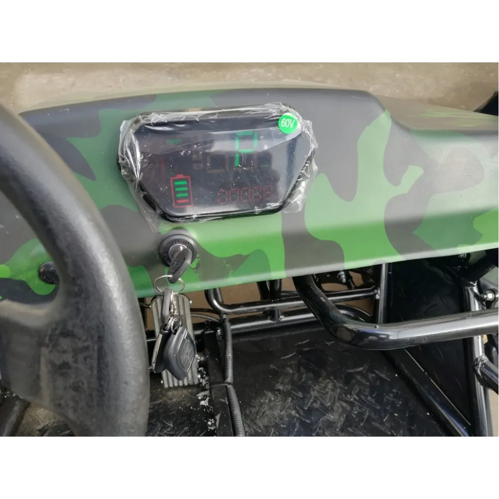 Техника представлена прочной и надежной конструкцией. Производитель акцентирует внимание на двигателе мощностью 1500 Вт. Улучшенные показатели мотора позволяют с легкостью набирать скорость 45 км/час. Для большей маневренности модель оснащена 3-х скоростным переключателем. Повышенная проходимость техники на дороге любого типа и покрытия обеспечивается высоким дорожным просветом. Багги имеет удобные сидения с функцией регулировки для длительных поездок без дискомфорта. Прочные ремни безопасности надежно фиксируют пассажира при езде. Измерение скоростных показателей обеспечивается современным LED спидометром.