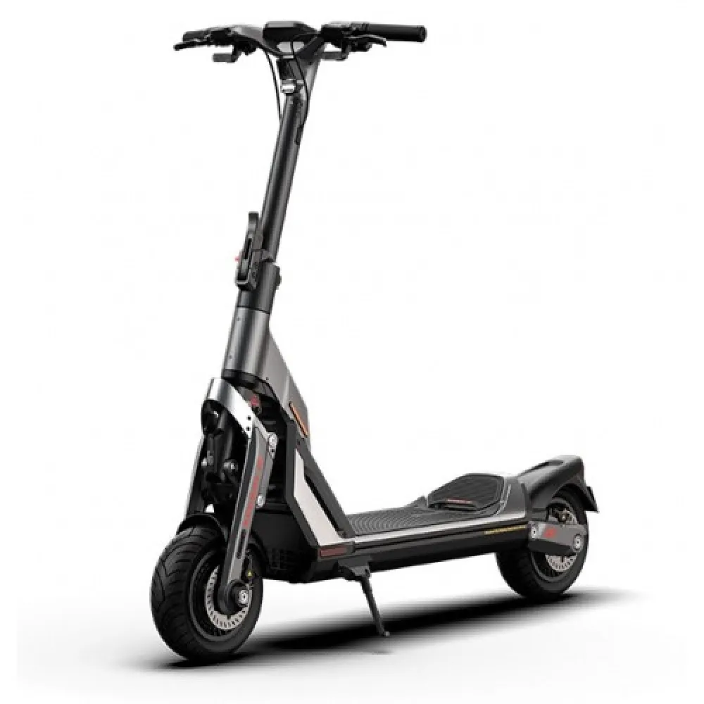 Техника оснащена фирменным электромотором 1400 Вт обещающим развитие максимальной скорости до 60 км/час. В сочетании с емкой батареей запас хода составляет 50 км. Батарея надежно укомплектована в деке, защищена от негативного воздействия погодных и других факторов. Время полной зарядки составляет 11 часов. 11-дюймовые коелса вместе с амортизаторами обеспечивают плавность хода по неровностям. Гидравлическая тормозная система – своевременность торможения. При весе 48 кг максимальная грузоподъемность рассчитана на 150 кг. Для достижения компактных размеров, удобных для транспортировки производитель предусмотрел систему складывания.