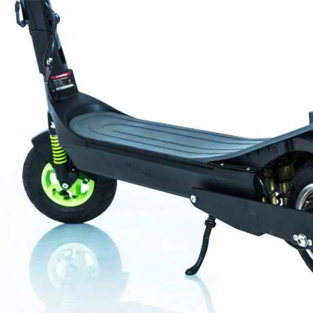 Опора для ног цельная, с антискользящим покрытием, а колеса 8 дюймов, с защитными крыльями, чтобы не попадала влага и грязь. Вся конструкция изготовлена из прочного сплава, который выдерживает удары.