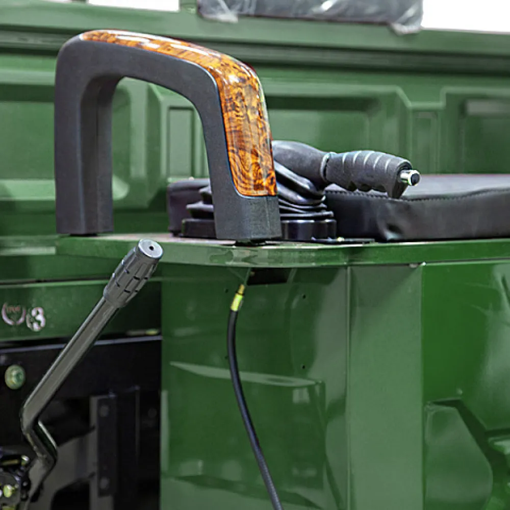 Мощность двигателя составляет 1500 Вт, в сочетании с гелевой тяговой батареей модель способна развивать скорость до 25 км/час и преодолевать 80 км пути. С такими характеристиками работать на приусадебном участке, в складском помещении или другой территории можно целый день. Модель оснащена вместительным кузовом, рассчитанным на грузоподъемность 1000 кг