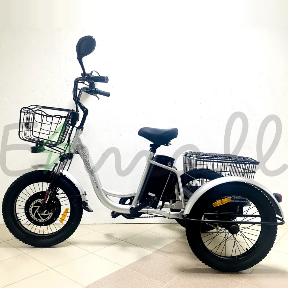 ТРИЦИКЛ ELTRECO PORTER FAT 500 – это трехколесный грузовой велосипед, который имеет мощный электродвигатель в 500W. Он справится с любой трудной задачей. Его можно эксплуатировать на даче, на придомовом участке, при перевозке продуктов или небольших грузов. Он комфортен даже при обычной велопрогулке, в багажнике можно разместить рюкзак/сумку, необходимый инвентарь.