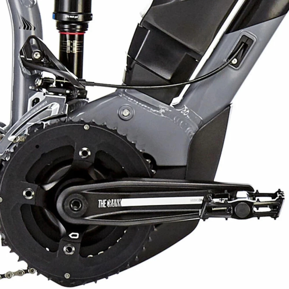 12 скоростная техника оснащена фирменными тормозами Шимано, гарантирующими безопасность езды и своевременность остановки. Амортизационная маслянно-воздушная вилка вместе с внедорожными колесами не знает препятствий при передвижении по бездорожью, глине, песку и другой проблематичной местности. Производитель заверяет, пользоваться электровелосипедом можно во всесезонье. Комфортное мягкое седло рассчитано на продолжительные передвижения в жестких условиях. Информационный дисплей, размещенный на рулевой части предоставляет информацию о скоростных параметрах, пробеге, заряде батареи и других важных для райдеров показателей. Стильный электровелосипед представлен цельной конструкцией, выглядит стильно и современно.