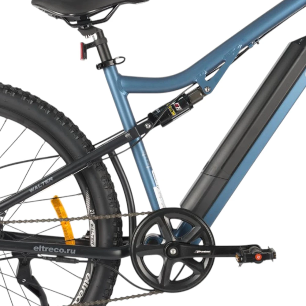 Электровелосипед Eltreco Walter черно-синий - это стильное и удобное транспортное средство, которое предлагает комфорт и удовольствие от поездок.